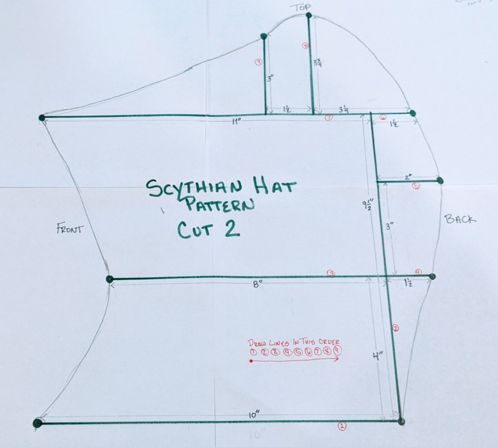 - Play connect the dots with gentle curves between each dot until you have the outline of the hat. Don’t over think this too much, the dots are keeping the pattern size correct.